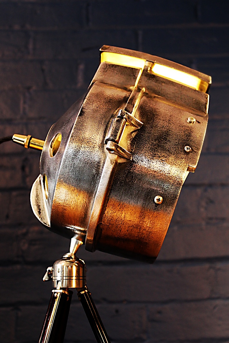 Oh-so-stylish Bullfinch working lamp converted to electric and mounted on a vintage tripod base with full tilt and swivel capability. The tripod extends to several different levels meaning it can be floor standing or table mounted giving so much versatility. The height can be adjusted from 63 cm to 145cm.