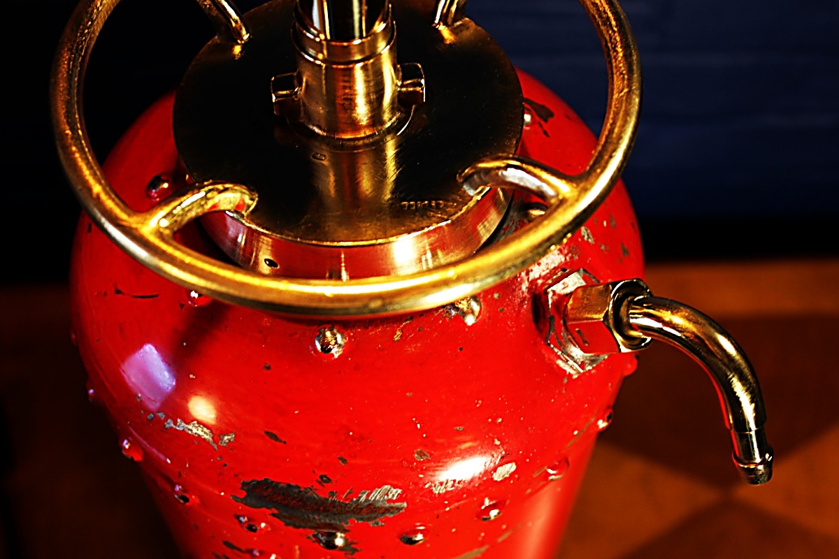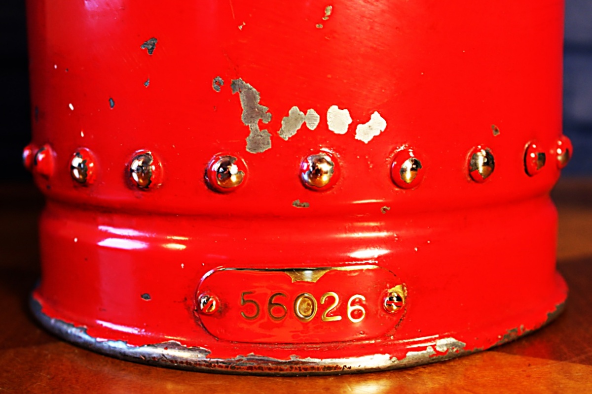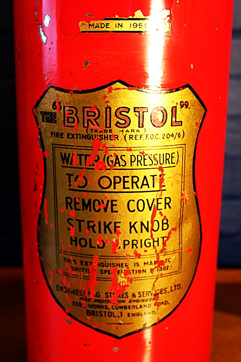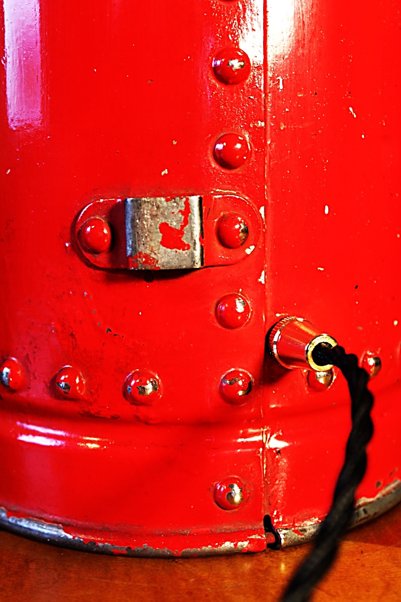 Happy 70th birthday to this fabulous bright red vintage fire extinguisher, still dazzling in it’s original paintwork. You’re still turning heads! Made by Bristol and marked for 1951, this striking piece also works as a floor standing lamp.