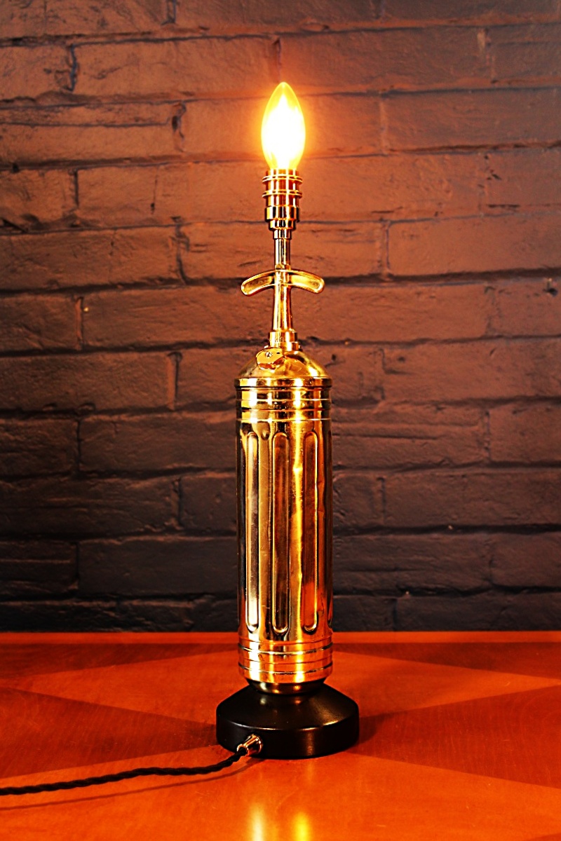 This fire extinguisher lamp has now sold but we have others very similar awaiting conversion so get in touch and we can make one especially for you with your own choice of base and coloured flex.