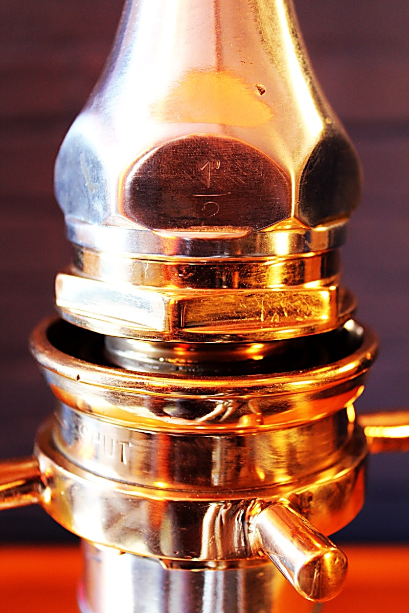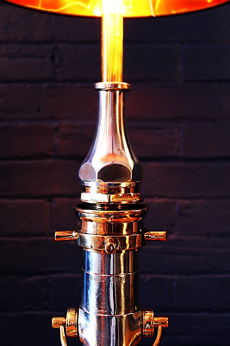 A striking vintage London Nozzle fire branch table lamp in aluminium and contrasting brass. These classy fire nozzles have been in use with the London fire brigade until recent times and are an excellent birthday or retirement gift for the firefighter or hero in your life.
