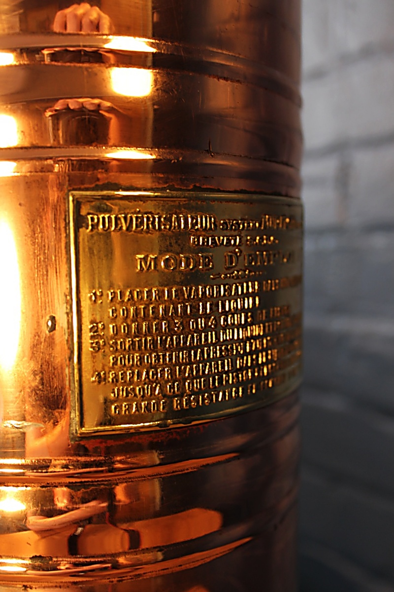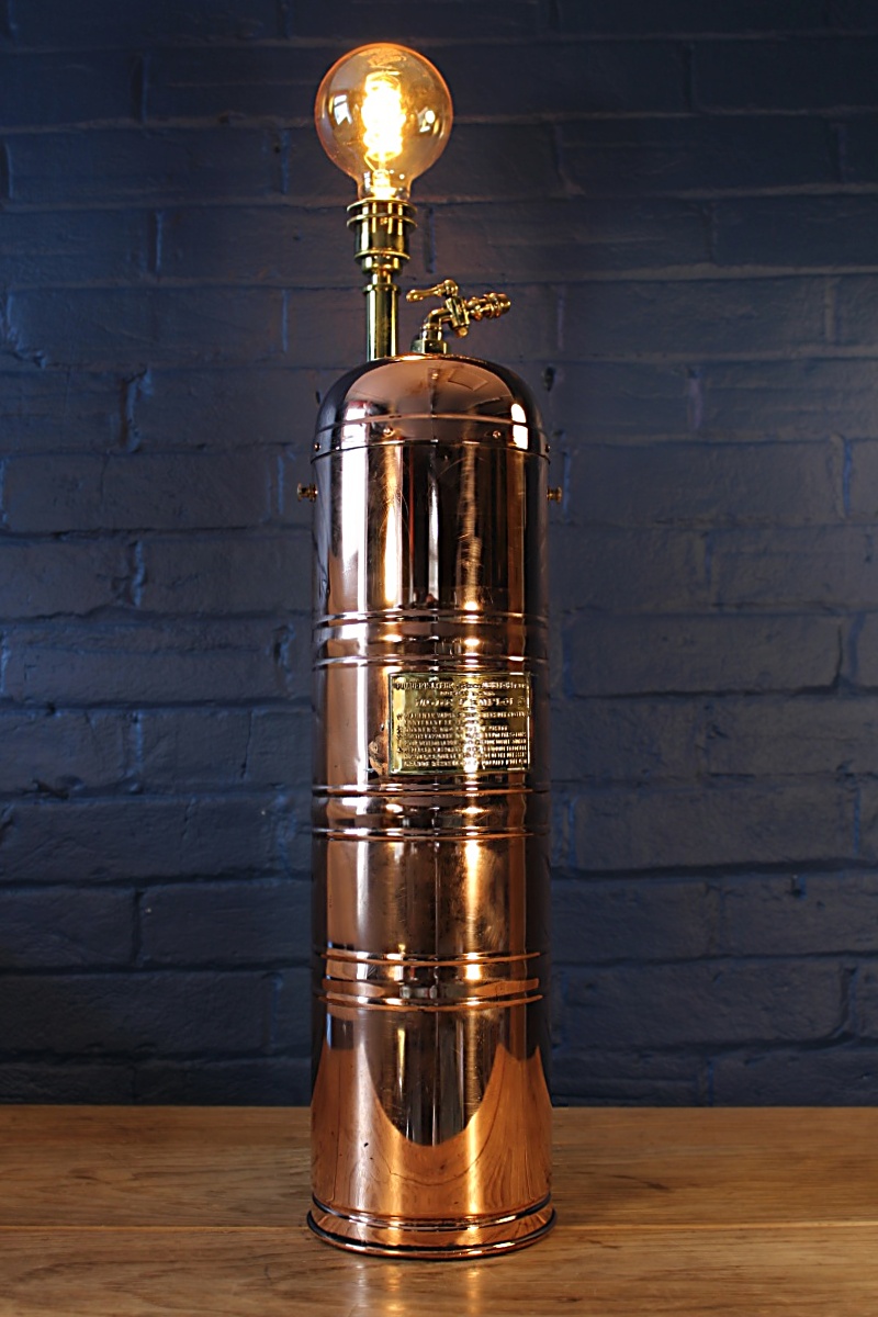 A wonderful large Muratori copper and brass sprayer from the early 20th century. Highly polished and with fabulous embossed brass labels, we’ve completed this piece with a matching brass lamp holder and cable grip.