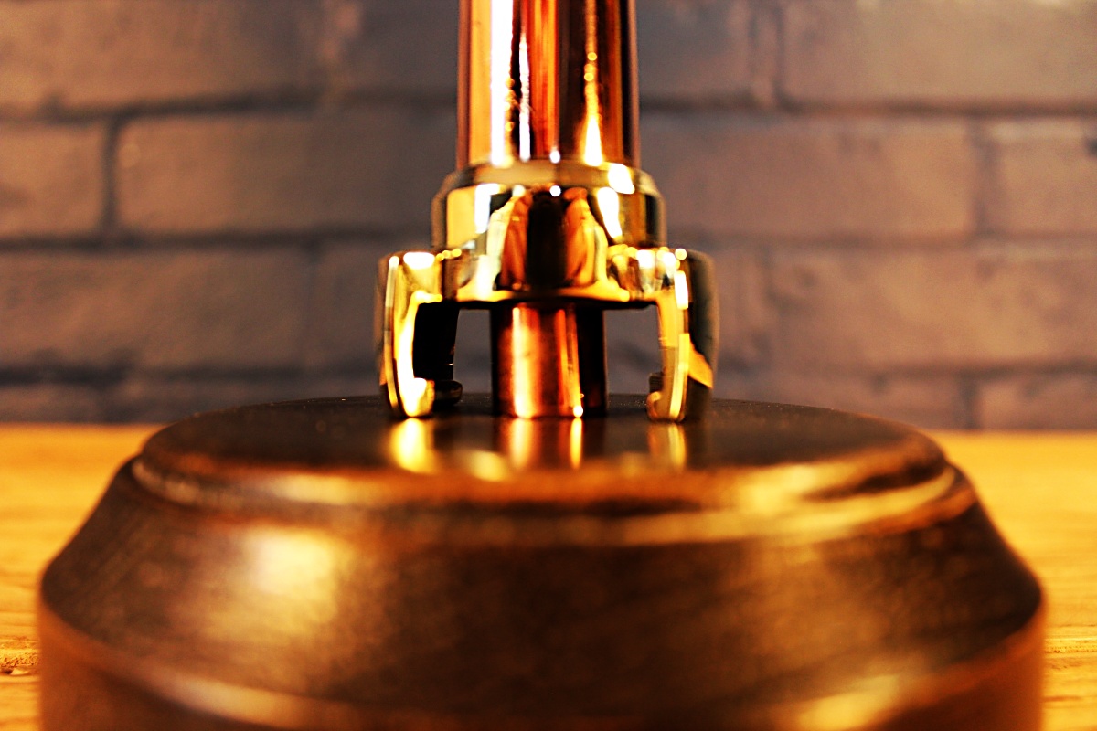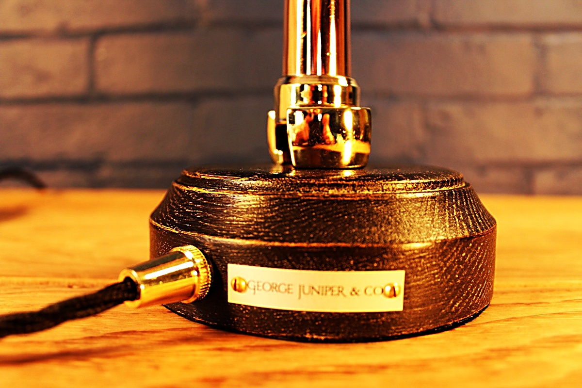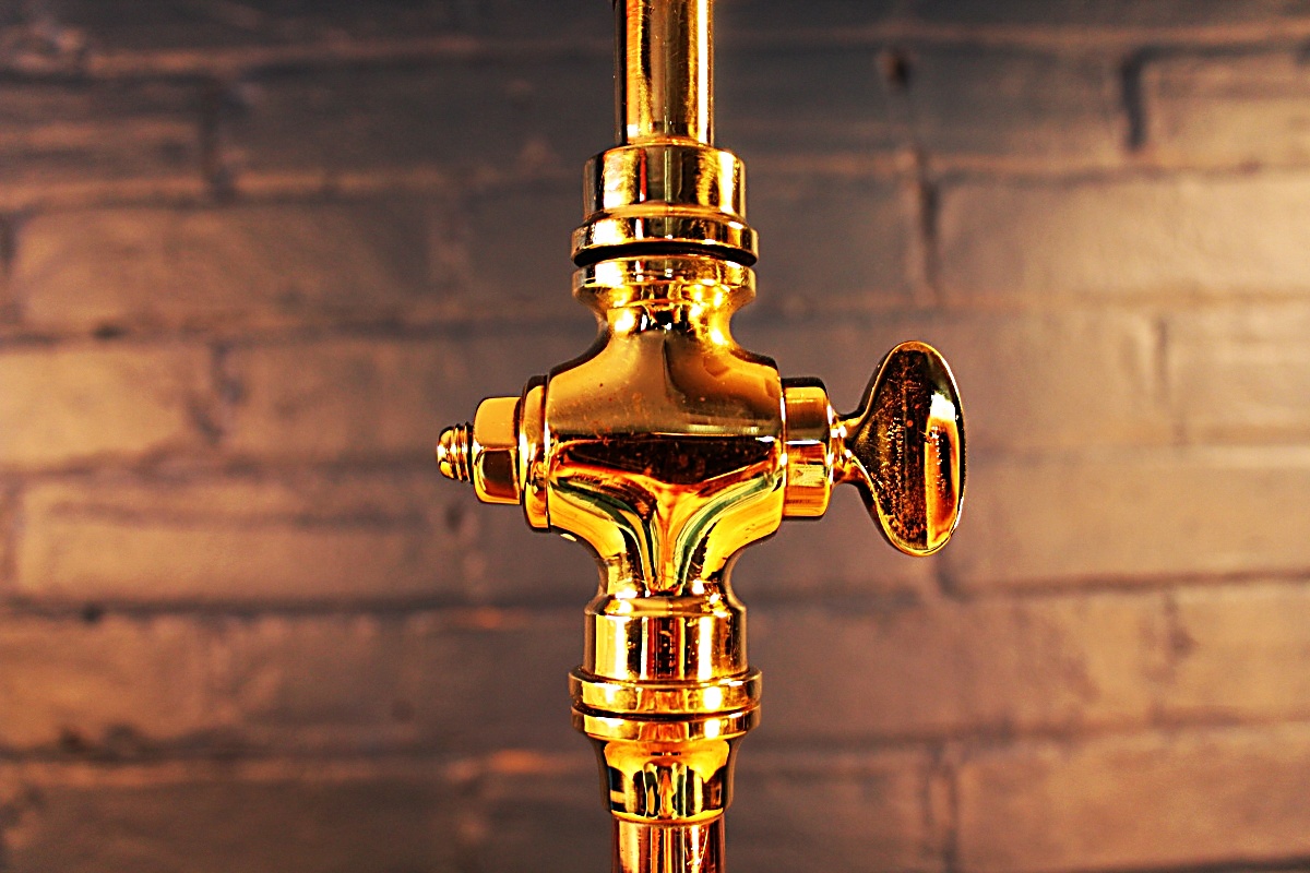 A slim antique brass and copper fire branch converted to a stylish lamp. This is a lovely petite item with such elegance for what was a very practical item in its original form.